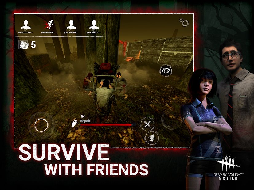 Dead by Daylight™ is an asymmetrical 4 vs 1 multiplayer horror game in which one crazed killer hunts down four friends through a terrifying nightmare. Players take on the roles of both killer and survivor in a deadly game of hide and seek. Dead by Daylight is available on PC, console and now free on mobile.