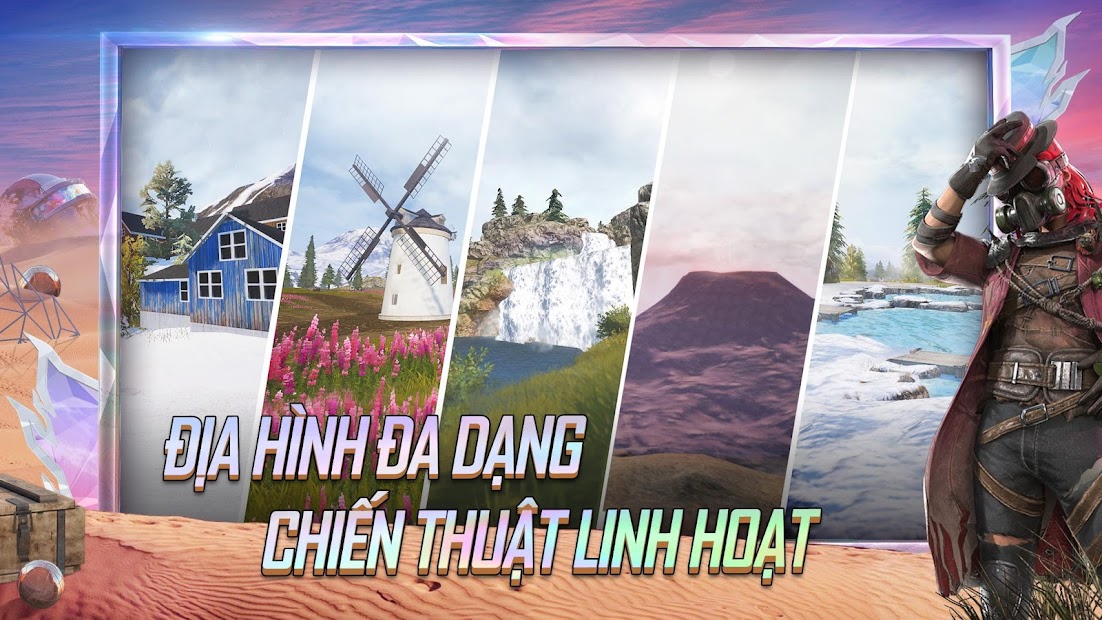 Khi tham gia trò chơi, bạn sẽ cùng 99 người chơi khác nhảy dù xuống một hòn đảo hoang để tham gia vào trận chiến sinh tồn. Vòng bo sẽ thu hẹp dần, người chơi phải chạy vào bo để tồn tại. Thu thập súng và trang bị, chiến đấu hành động với những người chơi khác và sử dụng mọi chiến thuật để có thể sống sót cuối cùng. ★★★ ĐẶC SẮC ★★★