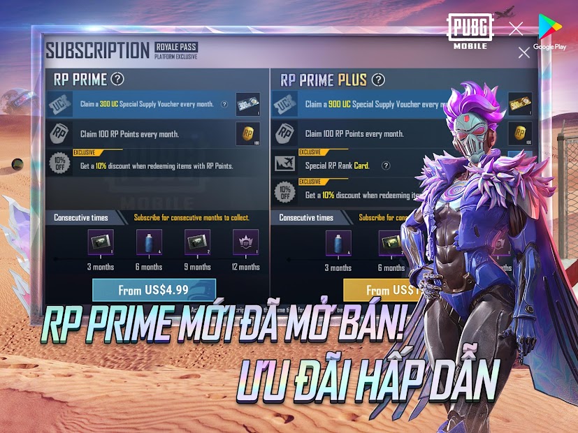 trong PUBG VN, đồng thời bạn luôn có cảm giác được chia sẻ. 5. Rank & thi đấu Sinh tồn là chưa đủ, phải trường tồn. Hệ thống nhiệm vụ & rank phong phú đa dạng trong mobile PUBG giúp các bạn không ngừng chứng tỏ kỹ năng bất tử của mình. 6. Tạo hình & Trang phục Ngoại trang trong thể loại bắn súng sinh tồn PUBGM được thiết kế tinh xảo như thật. Bạn có thể tự thiết kế khuôn mặt & chọn cho mình những trang phục thời trang được thiết kế tỉ mỉ, được chau chuốt từng chút. Mặc lên người những bộ đồ Richkid, bạn đã sở hữu trang phục BAPE ?