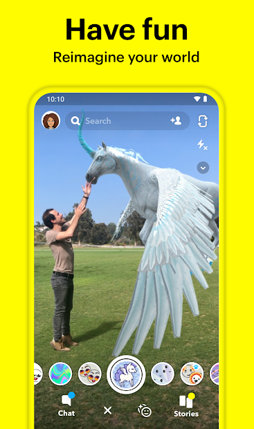 • Add a Lens or Filter to your photo — new ones are added every day! Change the way you look, dance with your 3D Bitmoji, and discover games you can play with your face.