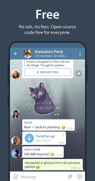 100% FREE & NO ADS: Telegram is free and will always be free. We are not going to sell ads or introduce subscription fees.